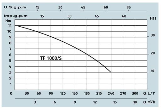 Отличительные особенности: • Мощность - 1,0 kW • Напряжение - 230V-50Hz • Производительность - 18,0 м3/час • Высота водяного столба - 11,5 м • Класс изоляции - F • Класс защиты - IP 68 • Ручка - пластик • Корпус насоса - пластик • Рабочее колесо - пластик • Вал с ротором - нержавеющая сталь • Технические характеристики насоса TF 1000/S Speroni (таблица)
