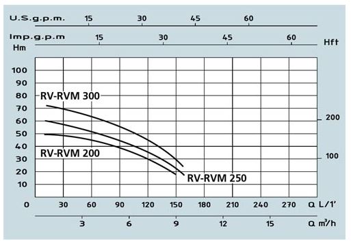 Отличительные особенности: • Тип - вертикальный, центробежный, многоступенчатый • Мощность - 2,0 HP; 1,5 kW • Напряжение - 230V-50Hz • Производительность - 9,6 м3/час • Высота водяного столба - 55 м • 2-х полюсной электродвигатель (2850 об/мин) • Класс изоляции - F • Класс защиты - IP 44 • Корпус насоса - чугун • Суппорт двигателя - чугун • Рабочее колесо - пластик • Диффузор - пластик • Кожух насоса - нержавеющая сталь • Вал с ротором - нержавеющая сталь • Механическое уплотнение - грасрит/керамика • Технические характеристики насоса RVM 200 Speroni (таблица)